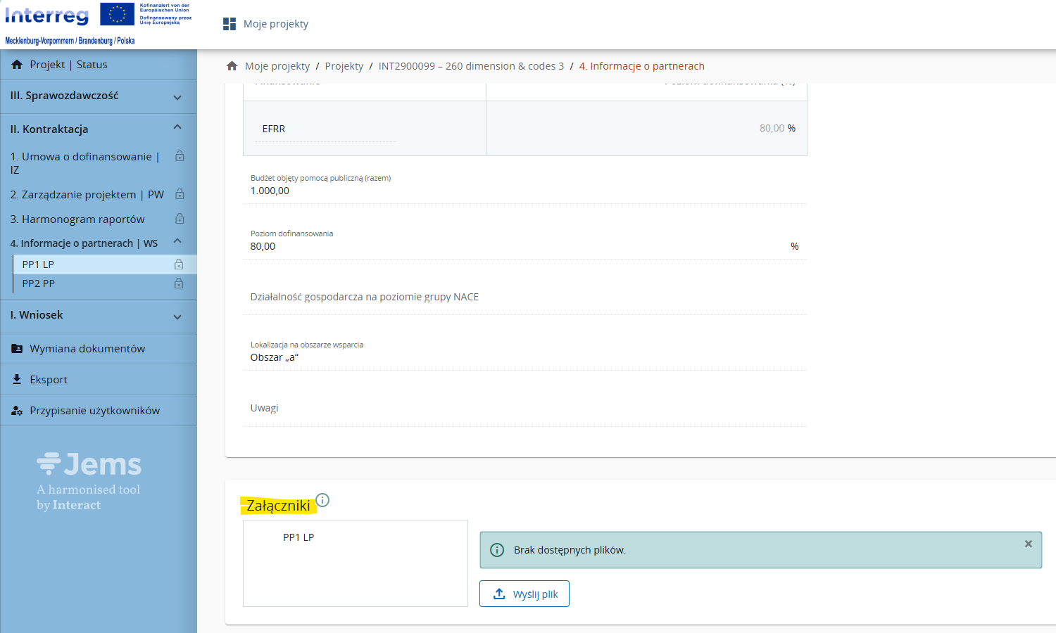 Ten obszar jest opracowywany przez Wspólny Sekretariat (WS). Zmiany danych bankowych partnera wiodącego zgłaszane są do Wspólnego Sekretariatu poza systemem Jems.