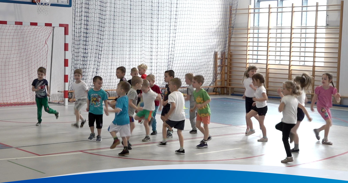 Eine Gruppe von 5-jährigen Mädchen und Jungen der Vorschule in Kliniska Wielkie wirbelt bei ihren wöchentlichen Bewegungsübungen durch die Turnhalle . Neben Spaß und Freude an der Bewegung, sollen sich die Übungen vor allem positiv auf Ausdauer, Schnelligkeit, Kraft und Gleichgewicht der Kinder auswirken. Die Übungen werden vom Trainer anhand der individuellen Bedürfnisse und Möglichkeiten der Kinder zusammengestellt und sind Bestandteil des Programms „Sei fit“. Das Programm wurde unterstützt vom Projektpartner, Universität Stettin, unter Berücksichtigung aktueller wissenschaftlicher Erkenntnisse sowie bewährter Verfahren entwickelt. Die Vorschule in Kliniska Wielkie ist eine von insgesamt 27 Einrichtungen, in denen das vom Projekt entwickelte Programm „Sei fit“ von etwa 1.000 Kindern getestet wird.
